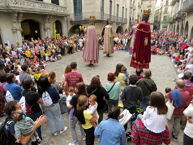 Arribades les gegantes a la plaça del Vi, les germanes Roser i Anna Maria Recasens, que porten la botiga "Recorda-te’n", l'alcalde de Girona, Lluc Salellas, i el 2n tinent d'alcaldia i regidor de Cultura, Quim Ayats, varen canviar els rams de les gegantes. Seguidament varen ballar els gegants i les gegantes.