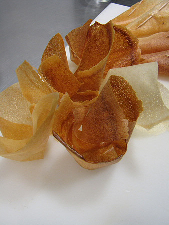Cistellet de pasta brick amb bacallà i melmelada