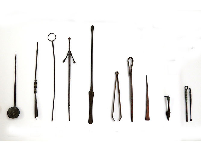 Conjunt d'eines mèdiques, bronze i os. Empúries (L'Escala, Alt Empordà). 1-50 dC. |