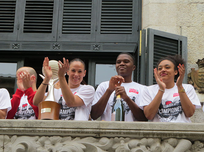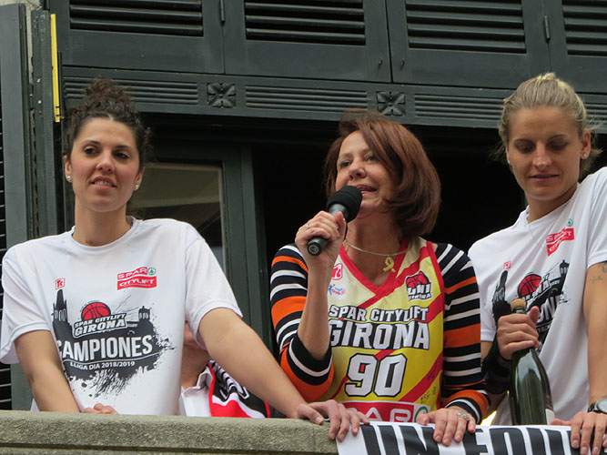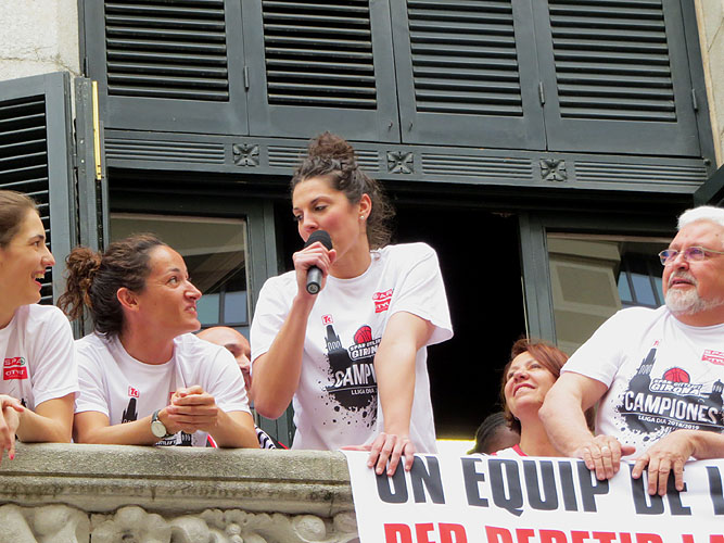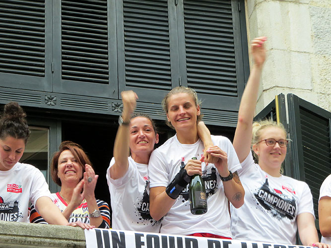 Arribada de les jugadores de l'Uni Spar Citylift a la plaça del Vi després de proclamar-se campiones de Lliga Arribada de les jugadores de l'Uni Spar Citylift a la plaça del Vi després de proclamar-se campiones de Lliga Arribada de les jugadores de l'Uni Spar Citylift a la plaça del Vi després de proclamar-se campiones de Lliga