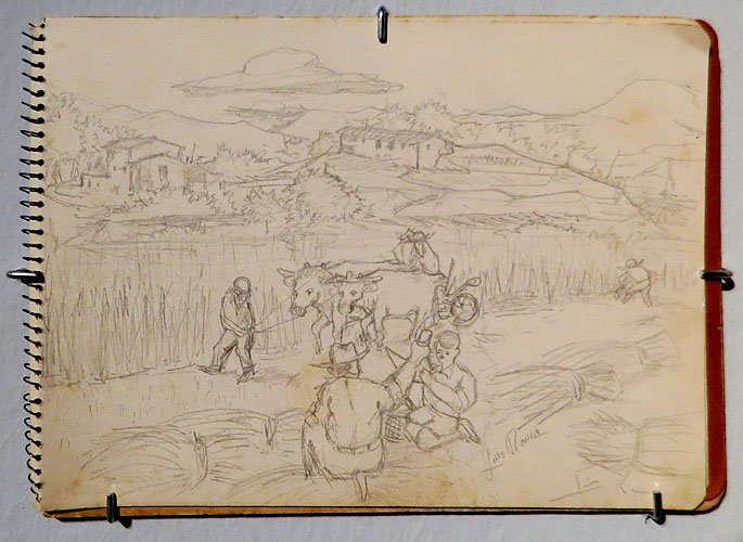 - Segant, 1963. Dibuix fet en viu que reflecteix un temps de sega a la seva vall, davant la Casota i Can Veí. A partir d'aquest dibuix va fer el quadre 'Segant el camp nou'.