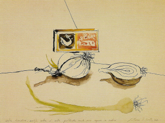Ceba tendra, mitja ceba i ceba grillada, amb una capsa a sobre. 1977
