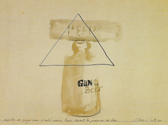 Ampolla de ginger beer i sabó marca Pears davant la presència de Déu. 1977. Aquarel·la i tinta. 23,9 x 32,2 cm.