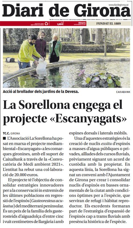 (Ampliar) - Notícia d'una de les accions sobre la fauna del brollador. "Diari de Girona", 22/2/2022.