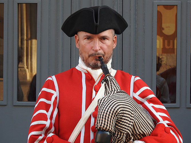 Antoni Desvalls, la seva Plana Major i l'exèrcit regular. Desvalls hi és en mig del seu estat major i del seguici de nobles que l’acompanyaven com a guàrdia de corps, entre els quals el coronel de fusellers Amill, el tinent coronel Ramon de Rialp del regiment de cavalleria Sant Jaume, el coronel de cavalleria Jaume Brichfeus, el capità Diego Nassarre del regiment de cavalleria La Fe, el coronel Josep de Peguera i Cortit senyor de Gràa i els germans Josep i Geroni de Castellvell entre altres. La tropa és formada per soldats professionals magraners provinents de la guarnició de Cardona. Dibuix de Francesc Riart (Vibrant) - (Ampliar)