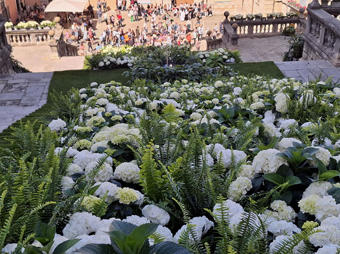 Flors i aigua brollant de la catedral. Enguany les escales de la catedral simbolitzen una cascada de flors i d’aigua. Un projecte liderat per Anna Maria Figa, Margarita Pla i Carolina Rodríguez, amb la participació dels membres de l’Associació Amics de les Flors i col·laboració de les brigades municipals. Ambdues entitats uneixen mans i esperit per celebrar 70 anys de Temps de Flors. Associació Amics de les Flors de Girona i brigades municipals de l’Ajuntament de Girona.