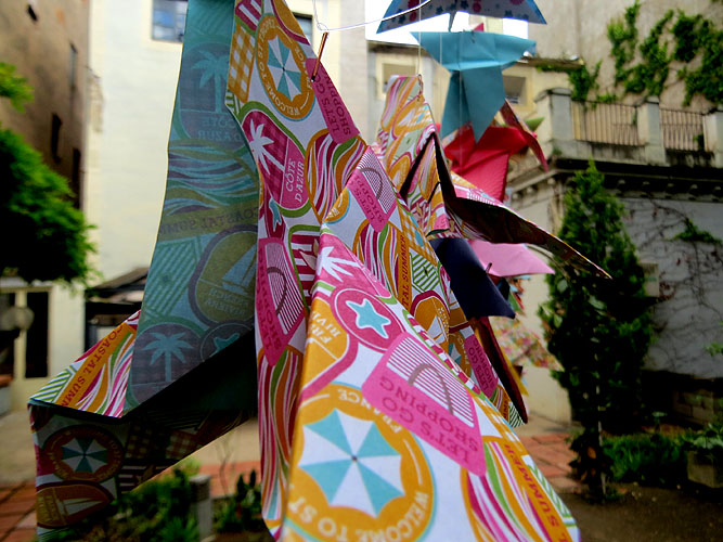 Al Jardí del Casino Gironí s'hi va instal·lar el muntatge "Volar". Volar té moltíssims significats diferents: marxar fora del niu, de la zona de confort, de la teva ciutat... Poder viure per primer cop de manera independent exposada a una nova realitat a vegades pot fer por, però alhora és emocionant, amb les seves incerteses i vivències, però sempre sabent que el niu no es mourà de lloc i sempre hi pots tornar per sentir l'escalf dels teus. Elaborat per Anna Sierra Hereu.