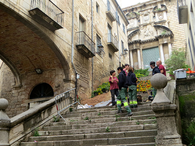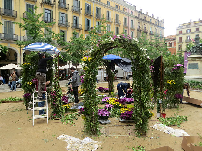 Durant els dies anteriors a la inauguració de "Girona Temps de Flors 2025", voluntaris, jardiners, artistes i dissenyadors preparen els muntatges i les instal·lacions als diferents espais dels barris de la ciutat, amb l'objectiu que tot estigui a punt per a la presentació als visitants.