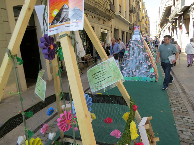 Al Carrer Nou es varen instal·lar diversos muntatges sota el títol "La gran piràmide". Qui en algun moment no ha vist una piràmide? Pensant-ho bé són molt presents; les piràmides d’Egipte, la piràmide alimentària, la piràmide feudal, el frau piramidal, la piràmide de Maslow, la piràmide de la lectura, la piràmide de l’esport, la piràmide de Pascal,... Doncs perquè no crear cada escola la seva gran piràmide?. Elaborats per les escoles i llars d’infants de Girona.