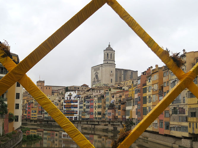 El núvol de mimosa. Mercè Rodoreda descriu en el conte “Aquella paret, aquella mimosa” la bellesa d’aquesta planta, descrivint les branques com a “núvols grocs”. Seguint la visió de Rodoreda, el pont més emblemàtic de Girona es converteix durant aquests dies en un núvol groc de mimoses. Elaborat pel alumnes del 2n curs d'Arquitectura Efímera de l'Escola d'Art i Disseny de la Diputació de Tarragona a Reus (EADR) amb la tutorització dels professors Nacho Álvarez, Lídia Porcar, Yuri Espanyol i Anna Gispert.