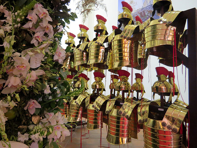A l'església de Sant Lluc - Castrum dels Manaies es va instal·lar el muntatge "Quo vadis floral visitor?". Per la porta de Sant Lluc es descobreix una carpa romana, agafada sobre florides columnes flamants, que, any rere any, veu abillar els manaies de Girona. Uns soldats romans transformats per al Temps de Flors en instrumentistes de l’EMG que us veneren i us honoren! Elaborat per Euken Ledesma amb la col·laboració d’alumnes, pares i mares i professorat de l’Escola de Música del Gironès i el grup musical Vivaldi.