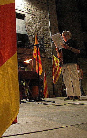 10 de setembre 2010. La plaça del Vi. Lectura del manifest per Montserrat Pumarola