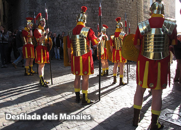 Dins les activitats amb motiu del 75è aniversari dels Manaies de Girona, el dissabte 5 d'abril 2014 va tenir lloc una desfilada inaugural del Maniple de Manaies, amb sortida i arribada a l'església de Sant Lluc-Castrum dels Manaies de Girona, que va recórrer els carrers de la ciutat.