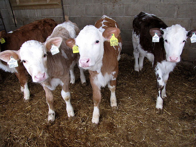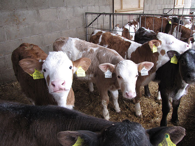 Les vedelles arriben a les granges amb un mes de vida. Tot són femelles; és millor per la carn.