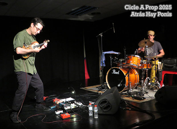 Dins el cicle "A prop", la programació cultural de petit format que porta als barris de la ciutat de Girona propostes artístiques de creadors emergents de les comarques gironines, el dissabte 31 de maig de 2025 "Atrás Hay Ponis" varen oferir un concert al Centre Cívic de Palau. "Atrás Hay Ponis" és un duet de música aventurera amb base a Banyoles. Format per Pablo Wayne i Fernando Moresi, fusiona bateria i violí processat amb efectes propis, incloent pedals i dispositius experimentals. El seu so transita entre el drum-and-bass, el jungle, el dub i l’ambient, que crea una experiència sonora immersiva i imprevisible. Fernando Moresi: violí i pedals. Pablo Wayne: bateria i efectes.