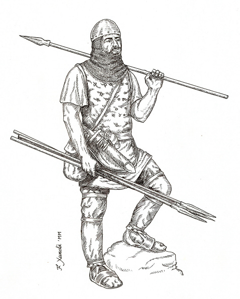 (Ampliar) - Tropes almogàvers. Dibuix de Fèlix Xunclà i Tubert