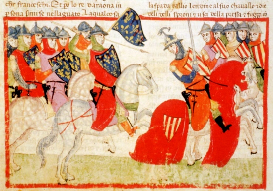 Nuova cronica. Pere III d'Aragó el Gran és ferit el 1285 durant la Croada. Segle XIV. Biblioteca Apostòlica Vaticana. (Viquipèdia)
