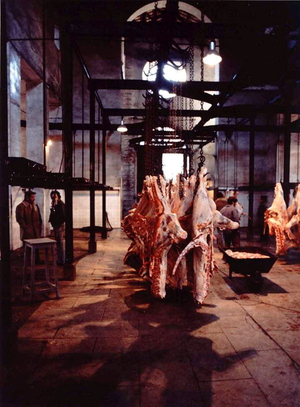 desolladas durante cuatro o m&qaacute;s horas, cubiertas, particularmente en verano, de insectos, cuyo instinto los lleva a deponer sus huevos entre los pliegues del cebo de las reses colgadas, huevos cuya transformación en larvas o gusanillos se verifica en menos de una hora; el aire que allí se respira está impregnado de cuantos gases pueden desprenderse de una fermentación pútrida continua; y la hediondez de su atmósfera corresponde perfectamente al mal gusto de su construcción [...] Añádase a todo esto la gritería de los trabajadores, cubiertos de sangre y armados de su instrumento mortífero; tal es el retrato fiel