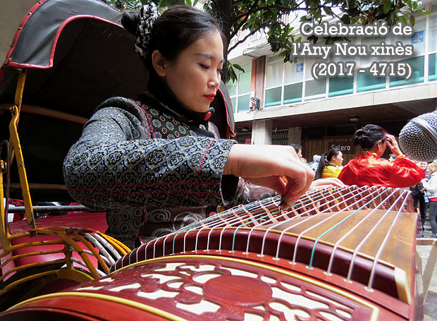 El dissabte 28 de gener 2017 es va celebrar a Girona l'Any Nou xinès (4715 segons aquest calendari), l'any del Gall de Foc. La celebració pública va ser organitzada per l'Association of Chinese Entreprise Development. Després d'una ballada davant el restaurant Gran Muralla del carrer Eiximenis, es va fer una cercavila amb els participants vestits amb roba de la dinastia Tang, i amb la desfilada dels dotze animals del calendari xinès: el gall, el mico, el conill, el cavall, la rata, el bou, el gos, el tigre, la serp, el porc, el drac i la cabra.