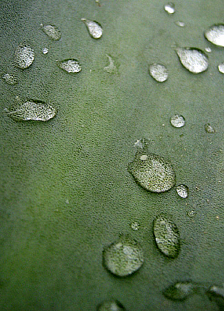 ![]() ![]() Superfície d'una fulla d'atzavara després de la pluja.