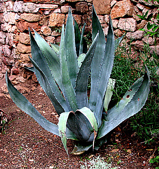 Atzavara (Agave americana)![]() L'atzavara és esmentada per Mossèn Cinto Verdaguer al cant onzè (Oliva) de "El Canigó": Com a un toch de clarí tropa lleugera, El nom comú amb el que es denomina en català "atzavara" prové de l'àrab magrebí as-sabara, que designa el sèver o suc de l'àloe. Està documentat des de l'inici del segle XVI. El nom científic "Agave" és la forma femenina de l'adjectiu grec agauós, que significa "meravellós, admirable". De les més de 300 espècies existents d'atzavara, algunes s'utilitzen per a l'extracció de fibres de les seves fulles per produir cordes, xarxes i altres objectes. |