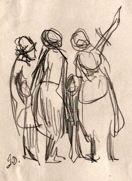 (Ampliar) - Gent mirant una execució a la forca. S/d. Gaëtan Dumas. Esbós. Bibliothèque municipale de Bordeaux.