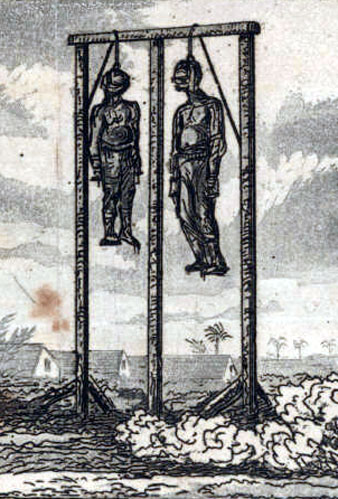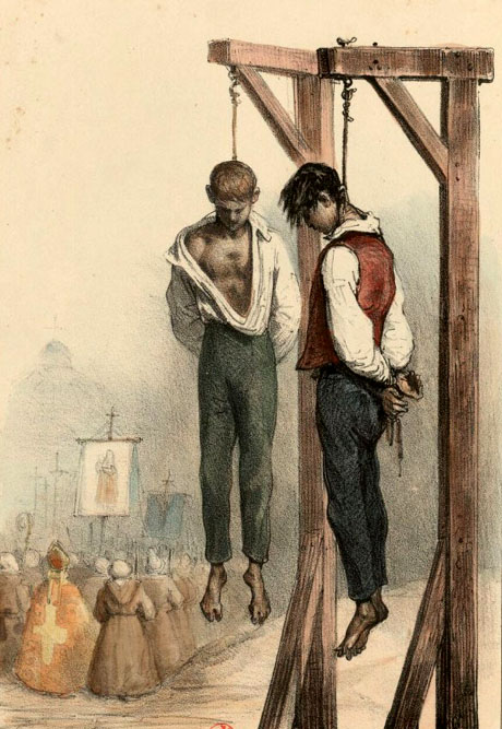 Execució a la forca, 1823. Detall d'un gravat. Viquipèdia.