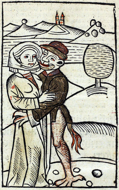 (Ampliar) - Una bruixa amb el dimoni. Gravat del segle XVI. Glasgow University Library.