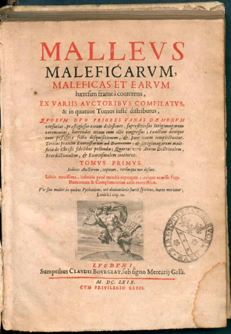 (Ampliar) - Portada de 'Malleus Maleficarum' (Martell de les Bruixes). Heinrich Kramer i Jakob Sprenger. 1486. Viquipèdia