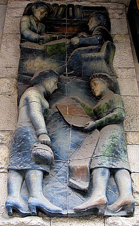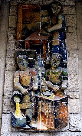 Pannels dels Oficis: Venedors de Teixits, Surers i Tapers, i Vidriaires. J. Martí Sabé - J. Vila Clara.
