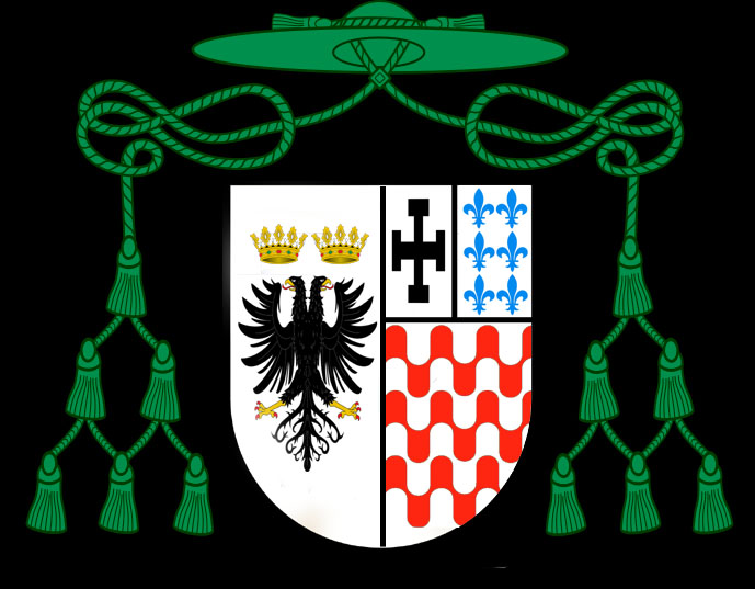 (Ampliar) - Escut episcopal del bisbe Benet de Tocco. Basat en la portada de "Ordinari o manual per als curats", Barcelona. Casa de Claudes Bornat, 1568.