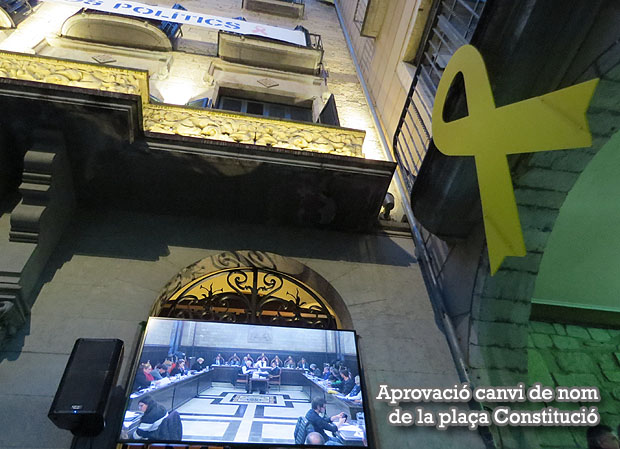 El dilluns 12 de febrer 2018 es va aprovar en el ple de l'Ajuntament de Girona el canvi de denominació de la plaça Constitució, que passarà a denominar-se plaça de l'1 d'octubre de 2017. L'aprovació es va fer amb els 18 vots dels regidor de CiU, ERC-MES i CUP, i els 7 en contra de PSC, Cs i PP. A la plaça del Vi, on s'havien instal·lat dues pantalles gegants per seguir el ple, es varen concentrar 600 persones, la gran majoria favorables al canvi de denominació El dimecres 6 de novembre 2017 ja s'havia fet un canvi de nom simbòlic popular.