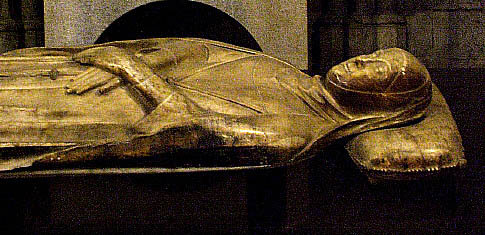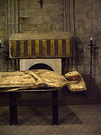 Estàtua jacent i sepulcre de Ramon Berenguer II Cap d'estopes a la nau de la catedral.