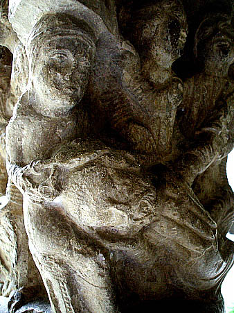Destrucció del temple dels filisteus. Samsó va dir al noi que el conduïa de la mà: «Guia'm fins a tocar les columnes sobre les quals descansa l'edifici, que m'hi vull recolzar». L'edifici era ple d'homes i dones. També s'hi trobaven els senyors dels filisteus, i dalt del terrat hi havia unes tres mil persones que contemplaven els jocs de Samsó. Llavors Samsó va invocar Jahvè: «Senyor, Jahvè, recordeu-vos de mi i doneu-me força encara per aquesta vegada, Déu meu, i que d'un cop em vengi dels filisteus pels meus dos ulls». Després Samsó va palpar les dues columnes damunt les quals descansava l'edifici, s'hi va repenjar, a l'una amb la mà dreta i a l'altra amb la mà esquerra, i va dir: «Moriré jo mateix junt amb els filisteus!» Va empènyer amb tota la força, i l'edifici es va ensorrar damunt els senyors i damunt tota la gent que hi havia dins. Van ser més els qui va matar amb la seva mort que no pas els qui havia matat durant la seva vida. (Jutges. 16:26-30). | ||||||