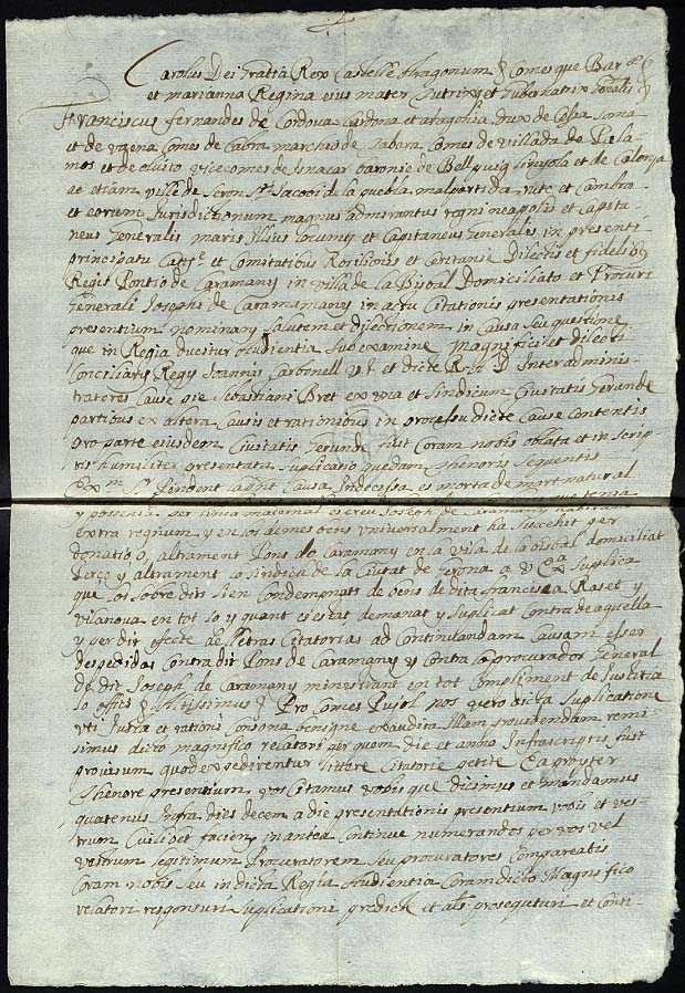 residència a Sant Pere Pescador. L'acte d'homenatge que el 1312 Ponç de Caramany va retre a Ponç Hug, compte d'Empúries, va ser el començament d'un llarg domini sobre terres i pobles, sobretot a Corçà, Sant Pere Pescador i, finalment, Girona. ![]() (Ampliar) - Sentència dictada per la reina Maria, com a lloctinent general del seu espòs Alfons el Magnànim, per la qual en confirma una d’anterior que absolia Joan de Caramany i d’Armengol referent a la demanda interposada per Joan d’Agullana, mestre de cases de Castelló d’Empúries, antic arrendatari del dret de lleuda, censos i altres drets reials de la vila i parròquia de Sant Pere Pescador, contra l’esmentat Joan de Caramany, pel pagament de la lleuda del blat. 1452. Fons Ajuntament de Girona.
