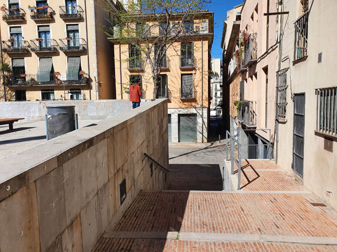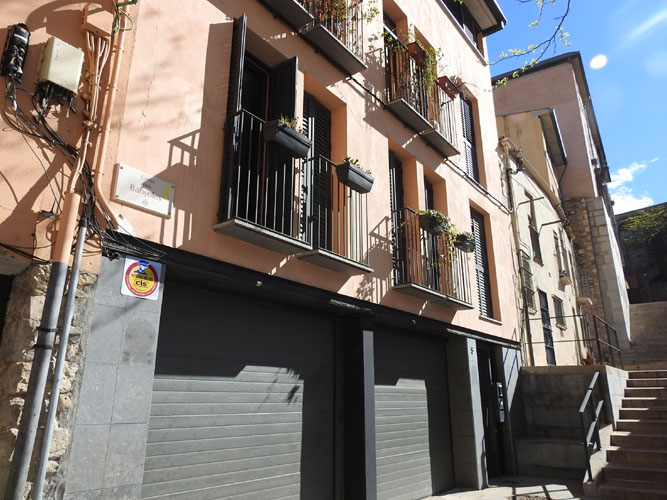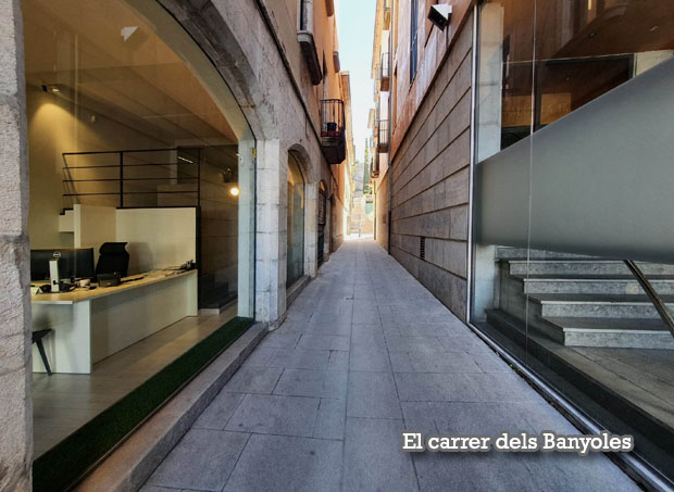 El carrer dels Banyoles comunica el carrer de les Beates amb la plaça de Catalunya. Fins al 1902, el carrer dels Banyoles s'acabava a la muralla de l'Areny, molt a prop del portal dels Albadiners, més conegut com a portal de l'Àngel, pel relleu escultòric que en decorava la llinda. El 1902 van desaparèixer muralla i portal, i els habitants del carrer dels Banyoles van veure's oberts a la Rambla Verdaguer i a la plaça de Catalunya a mitjans anys seixanta del segle XX.