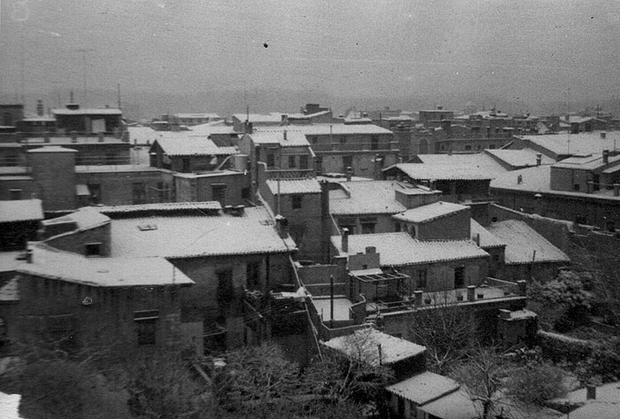 Imatge des d'un terrat del carrer Sant Josep. Nevada de febrer de 1956. Col·lecció particular.