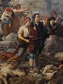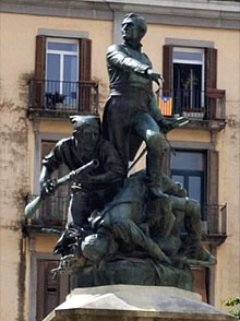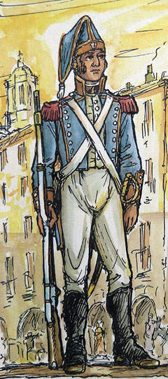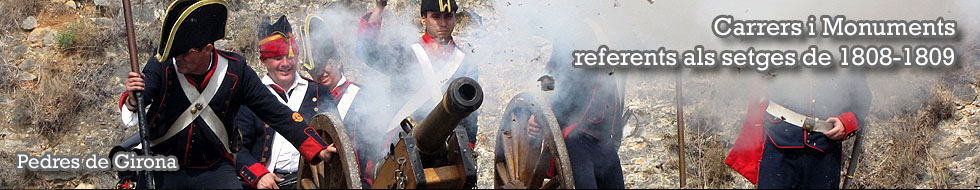 Girona, a primers del 1808, comptava amb 8.000 habitants, i el 1815 nomes en tenia 4.551. Les causes d'aquesta elevada mortalitat foren, per una banda les mortaldats produïdes per l'afer bèl·lic i també les ocasionades per la manca d'alimentació i per les epidèmies. Només durant el Segon Setge (del 5 de maig al 10 de desembre de 1809), es comptabilitzaren 233 cases enderrocades sense comptar les destrosses puntuals i danys generals a la resta d'edificis públics i privats; les zones més destruïdes corresponen a l’exterior de la ciutat (67%). Els carrers més afectats foren Pont Major (46 cases) i Pedret (33 cases). Els desperfectes de les instal·lacions públiques també van ser generalitzats. Cal recordar que els paviments de tots els carrers i places van ser desempedrats com una mesura preventiva realitzada durant els preparatius del setge. De retruc, acabada la guerra, es va agreujar la situació amb un quadre epidemiològic molt greu degut a la gran quantitat de sepultures superficials que es varen cavar dins la ciutat, segons les descripcions dels francesos després de l’ocupació. El record d´aquella gesta o tragèdia, segons com es vulgui qualificar, ha quedat reflectit en el nom d´un bon nombre de carrers, noms que recorden personatges, dates, fets combatius, formacions militars, que protagonitzaren la història gironina dels anys 1808 i 1809. Una pàgina memorable de la crònica de la Ciutat. Jordi Pericot, autor del treball d'identificació d'aquests elements urbans, en el que es basen aquestes pàgines, ha localitzat 51 carrers, places i passejos, classificats per sectors urbans, i també 7 monuments i escultures que en fan referència. (Dibuixos dels uniformes militars: Joaquim Pla i Dalmau). |