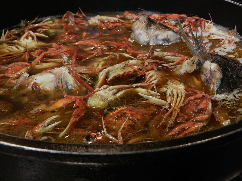 Si no disposem de crustacis el podem fer el brou amb peix de roca: serrans, escórpores, rates, aranyes, penegals, claus, etc...