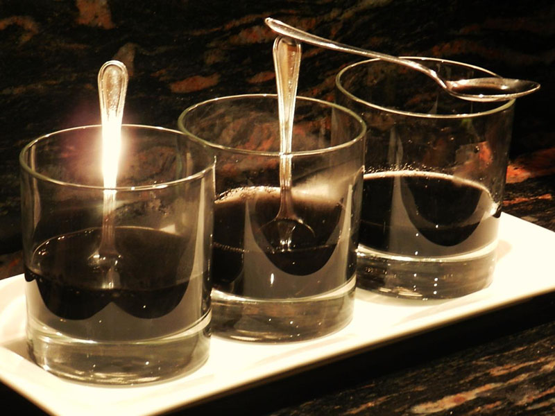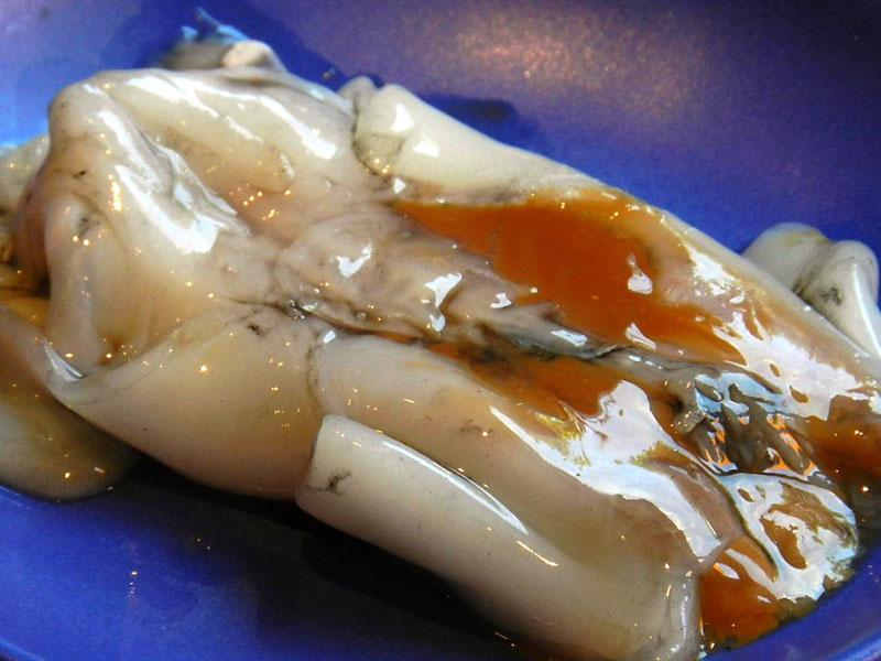 En aquest sentit, per escriure aquestes ratlles hem volgut tastar diferents tintes, bullint-les només amb aigua, (la tinta crua és tòxica, cal coure-la). Hem tastat la de sèpia i la de calamar frescos i també la congelada que es ven amb bossetes de plàstic. Dir que aquestes darreres no tenen cap gust agradable ni interessant, no tenen cap gust, per tant qui en faci servir o qui se la cruspeixi que sàpiga que és una pura operació cosmètica per donar color negre al plat, una cosa absurda gastronòmicament parlant, que més aviat trobem que embruta el plat (Foto).