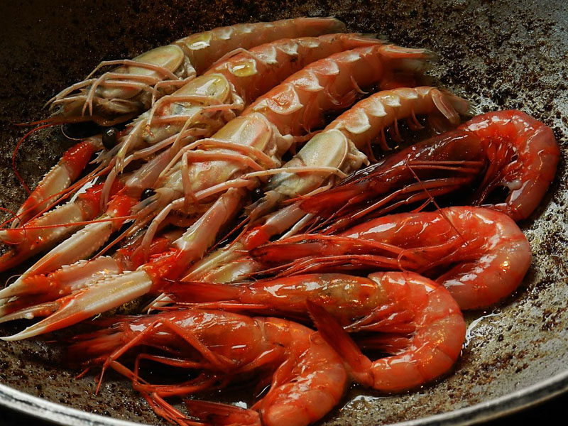 Un minut abans de tancar el foc afegim els escamarlans i/o les gambes.