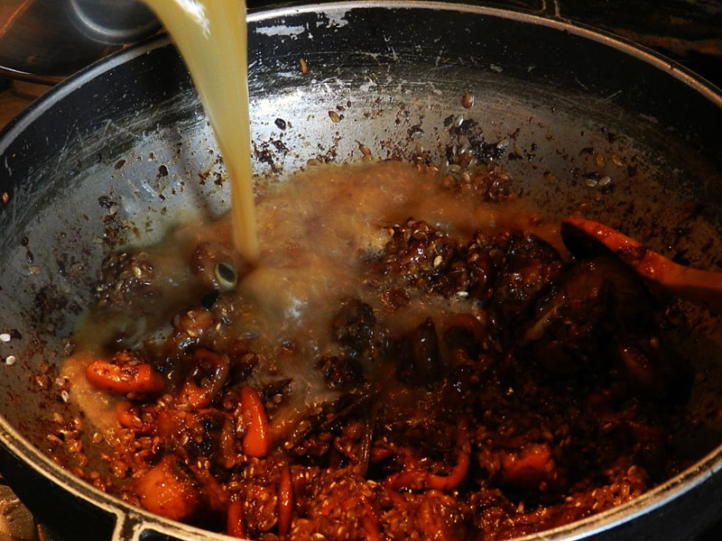 Quan faltin uns 5 minuts per tancar el foc hi afegim la picada deixatada i la clova.