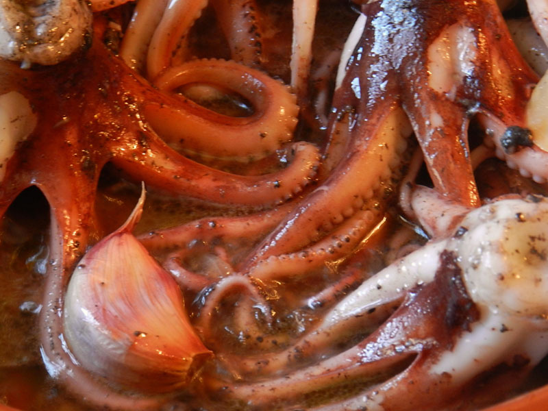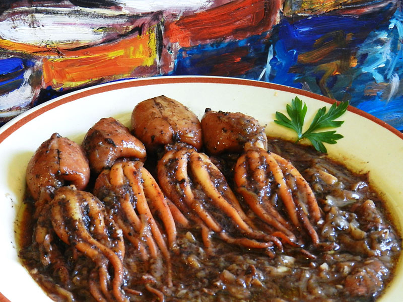 També podem afegir-hi una picada, o bé una picada amb una presa de xocolata, que tant amb els pops com amb els calamars s’hi avé molt.