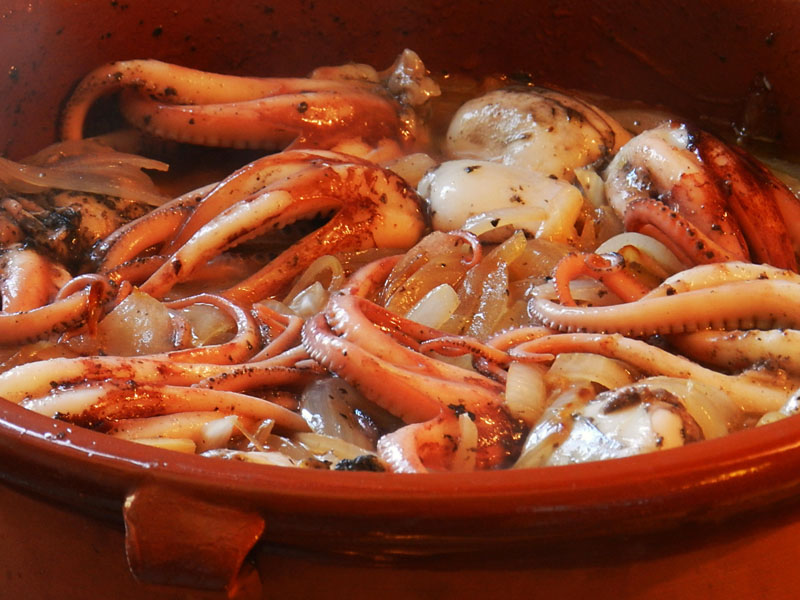 Podem ofegar els pops de la mateixa manera, potser amb menys ceba, i afegir-hi un all i oli negat al final. Amb o sense patates.