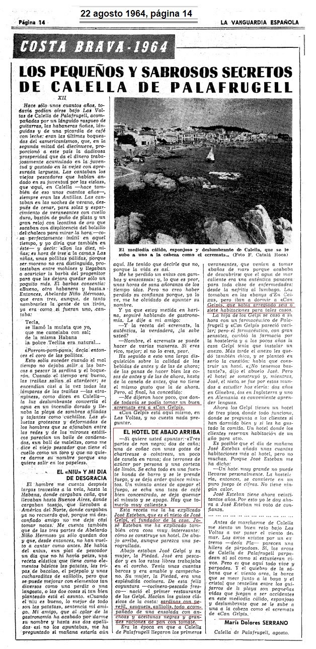 Article de Maria Dolores Serrano a 'La Vanguardia'. 22 d'agost 1964.