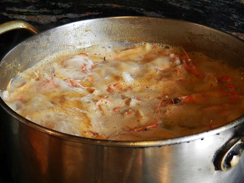 Amb el fumet fet, colat i ben calent, l’all i oli de fetge a punt, i els filets d’escórpora nets d’espines ja podem començar a fer el suquet pròpiament dit (Foto).