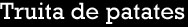 Recepta breu - Pelem i tallem les patates a rodelles fines i les posem a coure primer a foc fort i després a foc suau en una paella amb oli. Escorrem les patates les barregem amb els ous batuts. Fem la truita en una paella, la girem a mitja cocció.