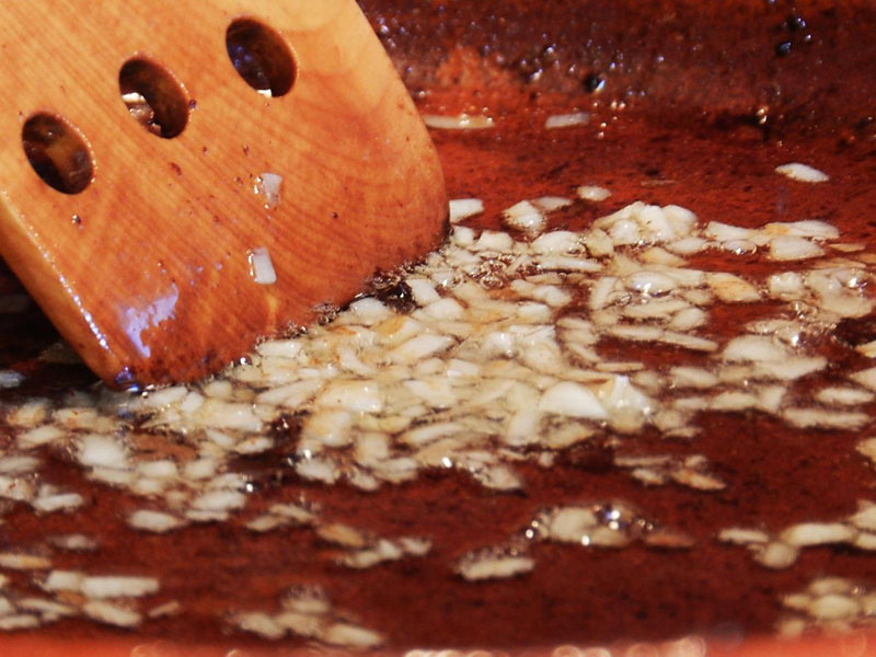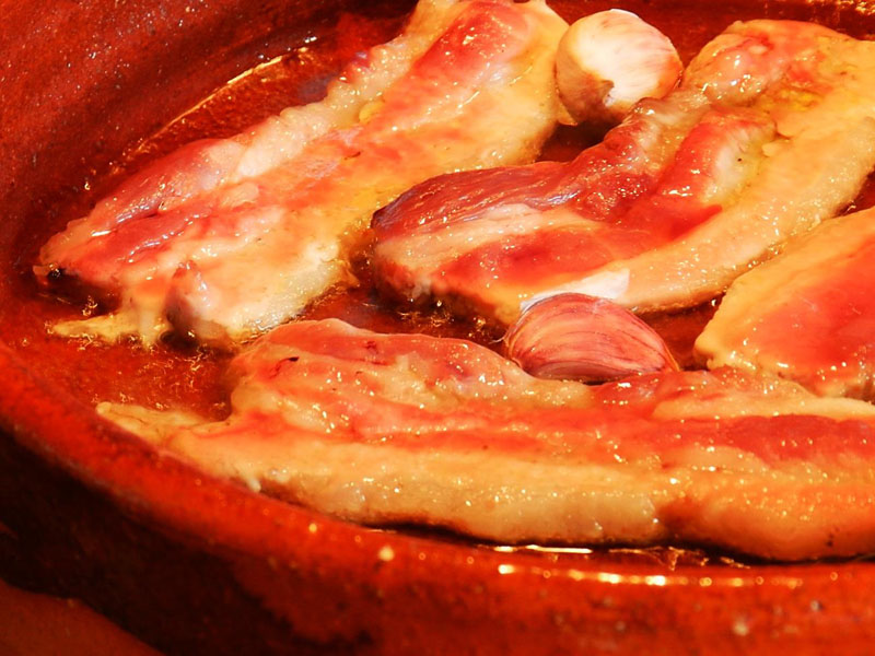 Recepta al detall - En una cassola de terrissa comenceu a enrossir amb un raig d’oli les xulles de cansalada, prèviament salpebrades (Foto).