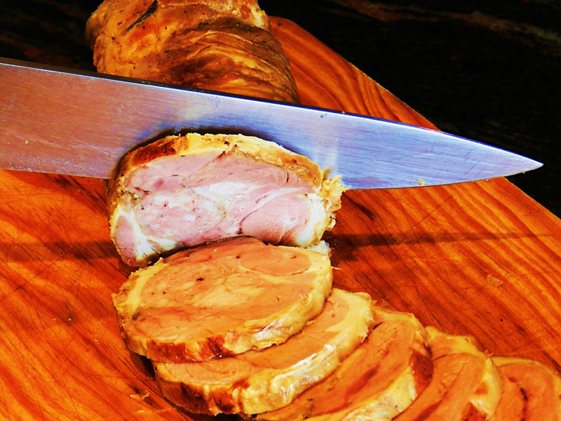 El desossat de la peça té l’avantatge de que un cop feta la podem tallar a rodelles i facilita més menjar-la en fred.