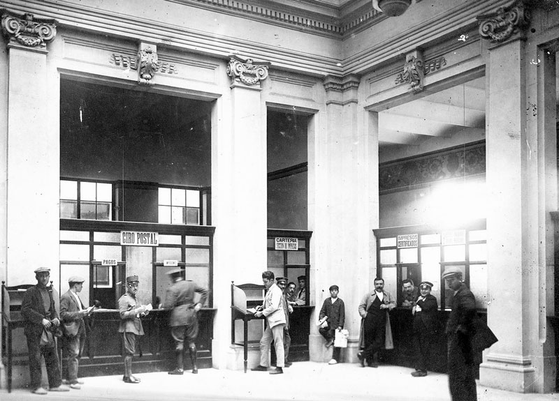 (Ampliar) - Interior de l'oficina de Correus i Telègrafs de Girona, 1922. Autor desconegut. CRDI - Ajuntament de Girona.